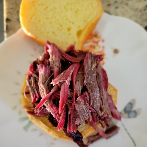 - Simply put some of the shreded beef on a bun, top with BBQ Sauce, or Slaw or any other toppings of choice. Or to stay KETO, serve straight up without the bun. Just enjoy.6 Buns of Choice